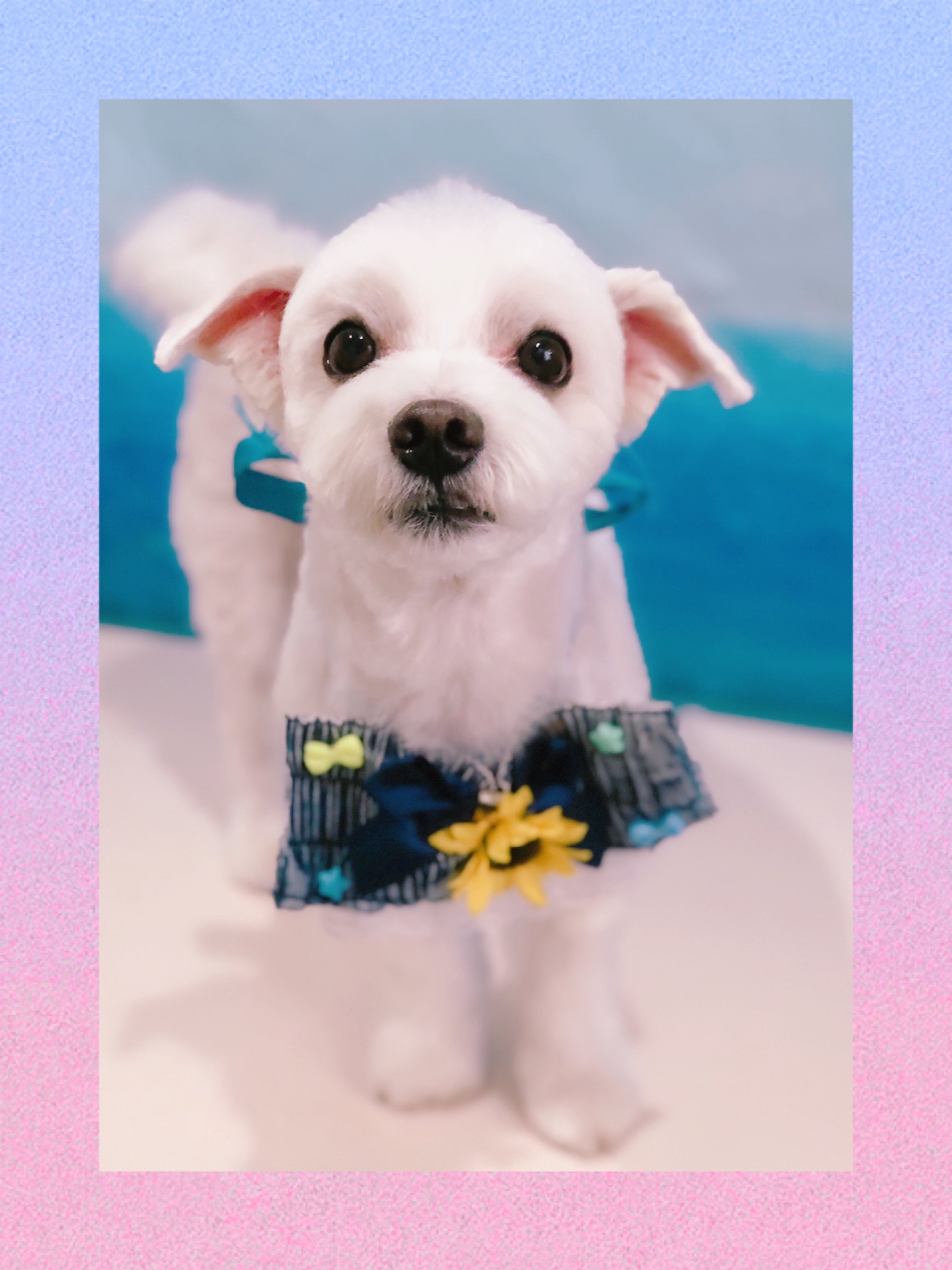 身体は短くカットして、お口周りはふんわり残しました🌼😆お写真も可愛く撮れたね🥰