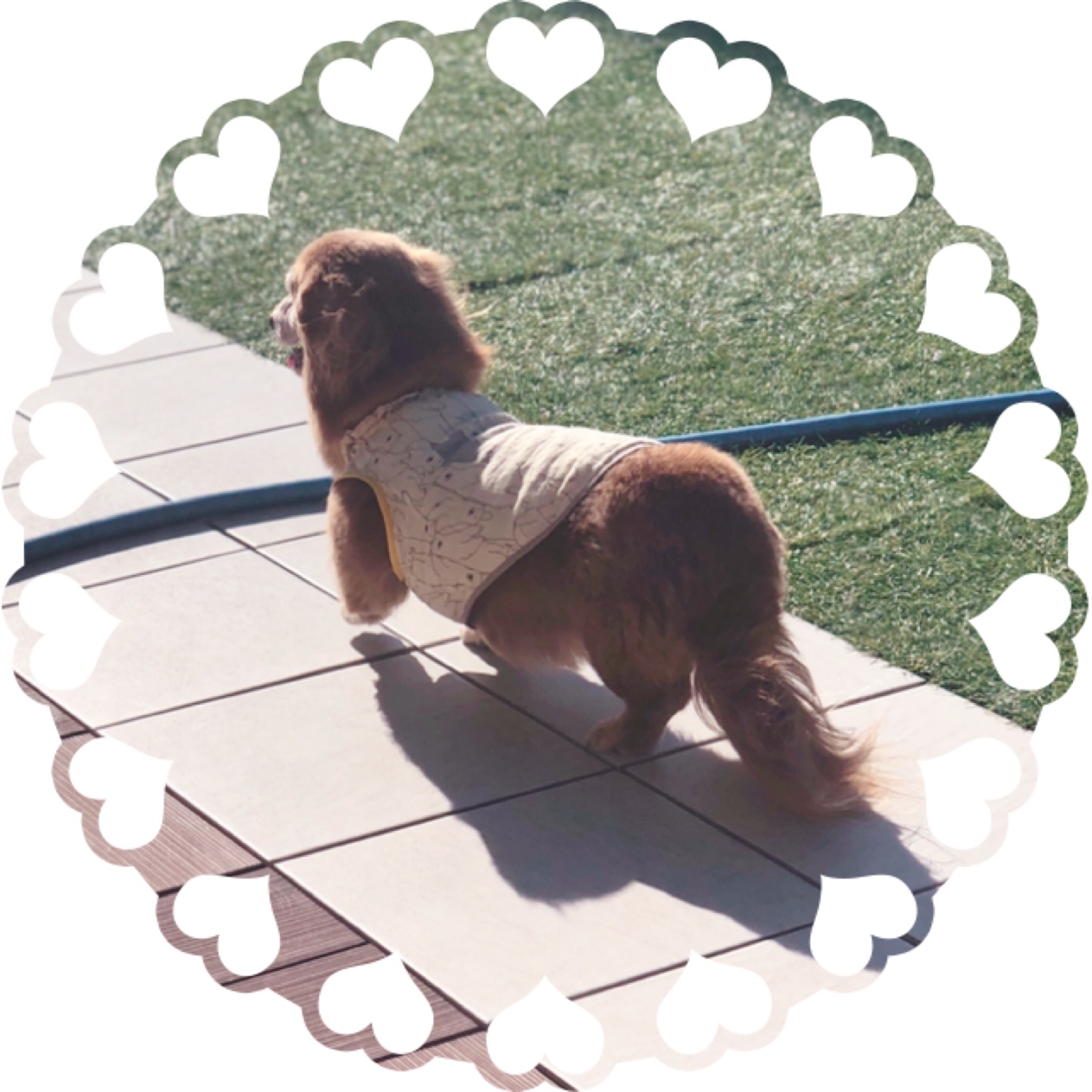 スタッフのわんこです🐶おばあちゃん、相変わらずお顔真っ白😂ちょっと丈の短い洋服来てドッグランで遊びました😊🐾普段、お家で寝てばっかりなのでちょっと疲れたみたいです🤣💖