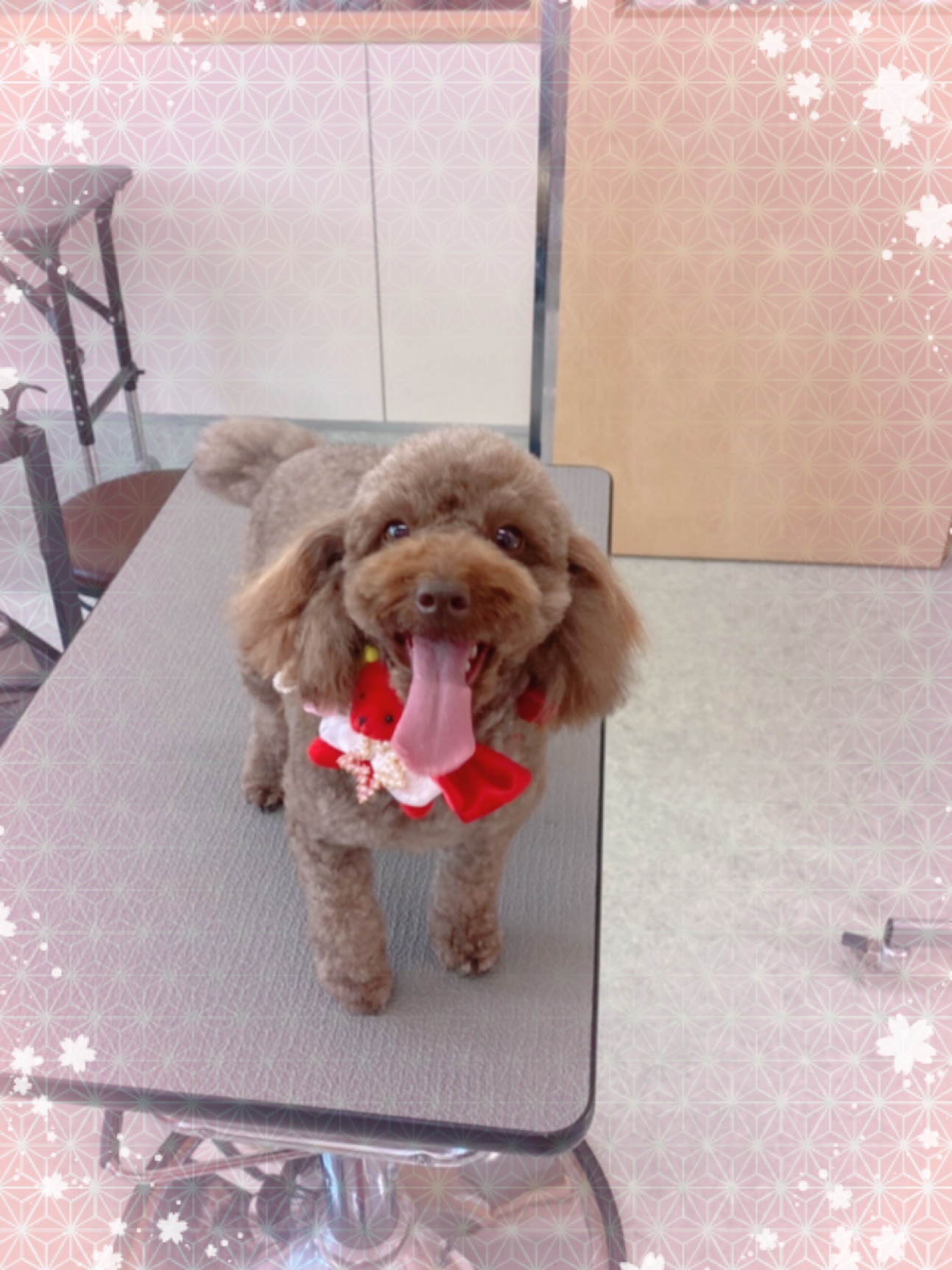 とーっても元気いっぱいすぎる茶々ちゃんは、トリミングテーブルの上でもトリミング室の床でもぴょんぴょん🎶ぐるぐる🤣🎶