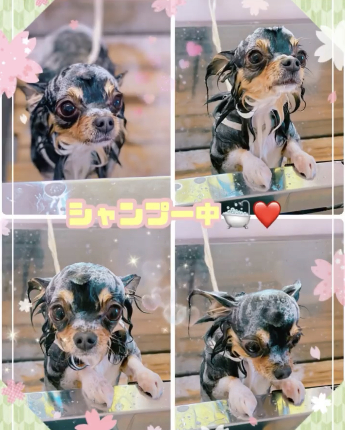 足腰が立たないのでシャンプーはせずに、トリマーのお膝の上で15分ほどでキレイにします😊